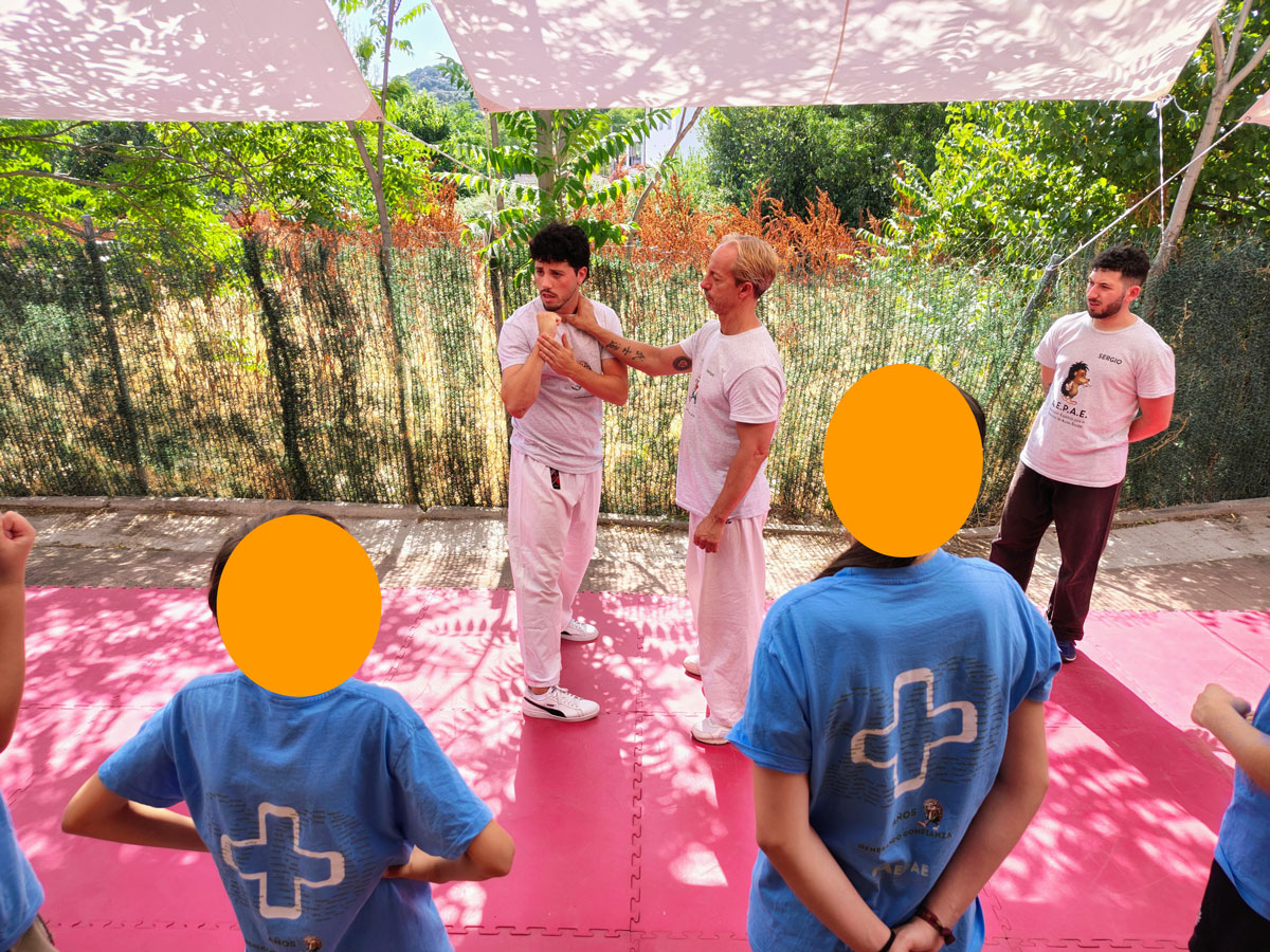 Por la tarde, el equipo de autodefensa, con Samuel Romero Cuadra desde la delegación de Málaga, guio una sesión práctica y rigurosa para seguir profundizando en herramientas de autoprotección. Recreamos situaciones en las que nuestra integridad física puede verse comprometida, para aprender a reaccionar con seguridad y firmeza, reforzando la percepción de control sobre el propio cuerpo.